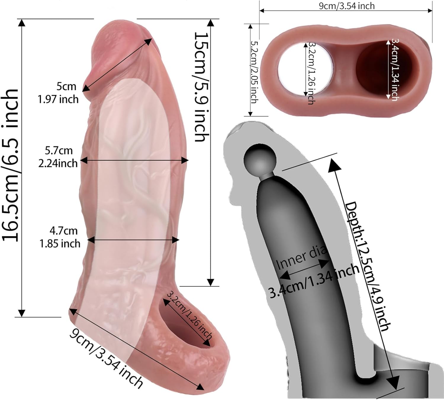 Ring Diameter: Penis Sleeve diameter 1.34in, cock ring diameter 1.26in