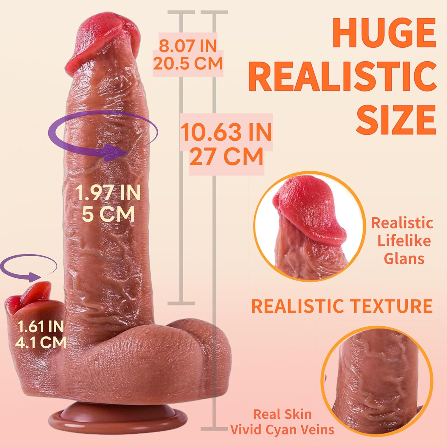 [Super Long & Vibration] This large dildo vibrator features 3 powerful thrusting speeds, 9 vibration modes and heating function that warm to body temperature for an incredibly lifelike experience.