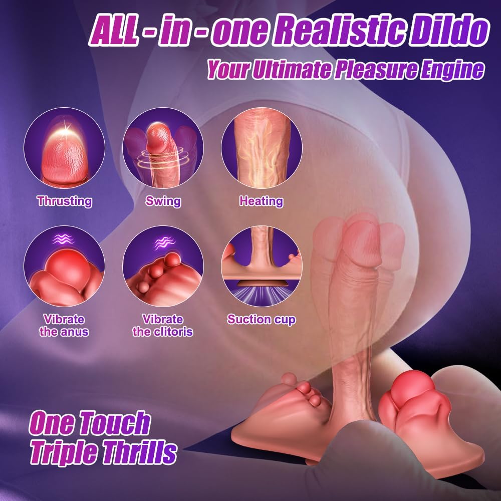 Thrusting Dildo, 10 thrusting swing modes, the sex toys for women and Special angle design rose vibrator delivers inters precise stimulate G-spot & clit & anal stimulation. The realistic dildo can provide deep rumbling G-spot or P-spot stimulation.